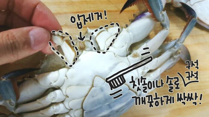 자 이제 본격적으로 꽃게를 손질해 보까요오ㅋ