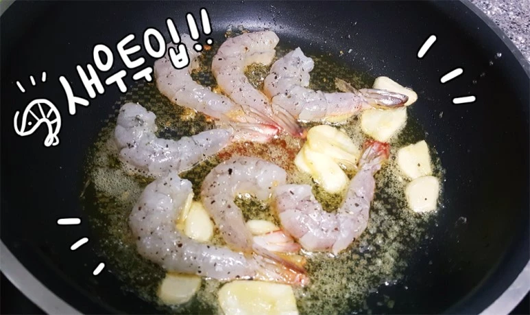 버터가 녹으면 새우 투하!