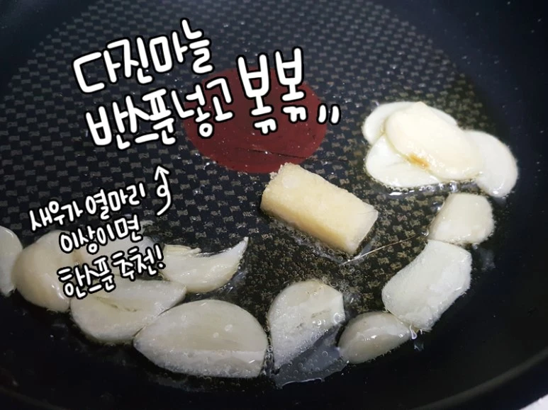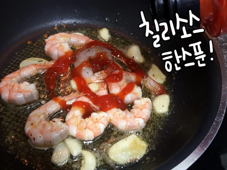 새우7~8개, 마늘2알, 다진마늘, 버터, 칠리소스,