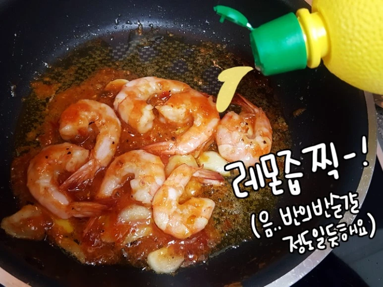 새우가 익어가려하면 칠리소스&레몬즙 넣고 한번 더 볶기