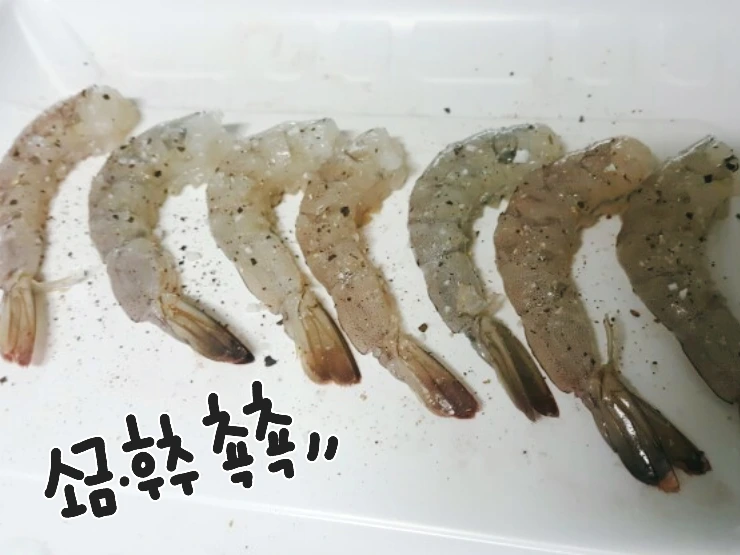 새우손질 or 해동 후 소금후추추춧 해서 준비!