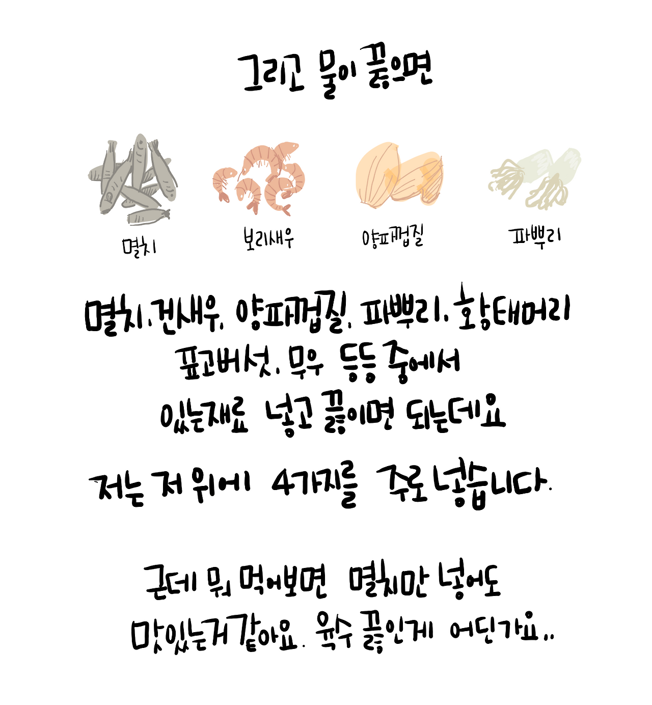 저희 엄마도 멸치랑 다시마만 쓰시더라구요ㅎ