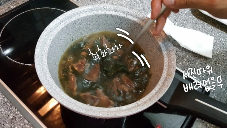 (상구기는 이번엔 고기 육수 먼저 끓여낸 후에 넣었어용)