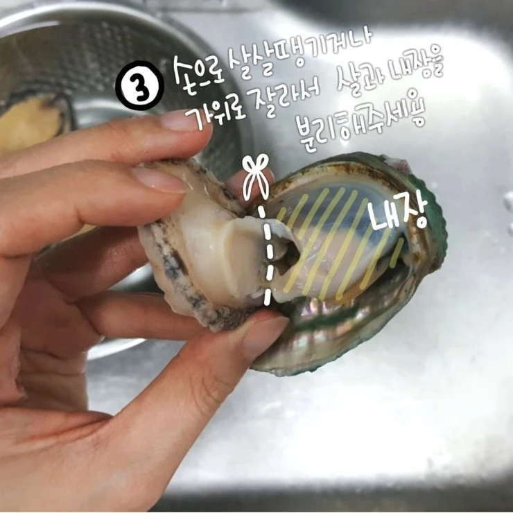 내장은 숟가락이나 손으로 떼어서 모아주세요 :-0