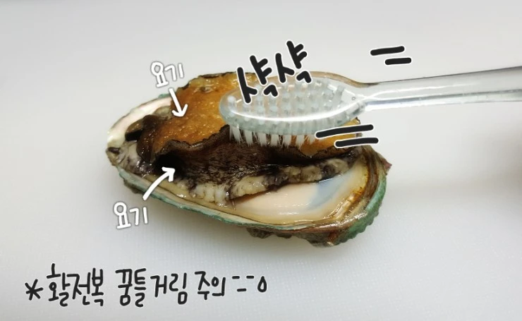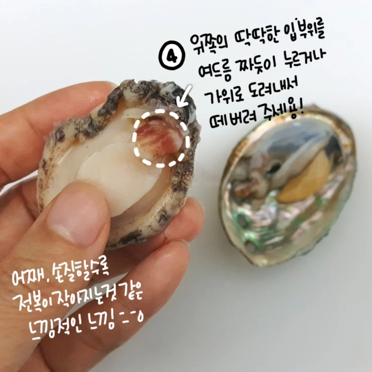 전복은 해동한 뒤 격자로 칼집을 내서 준비해주세용