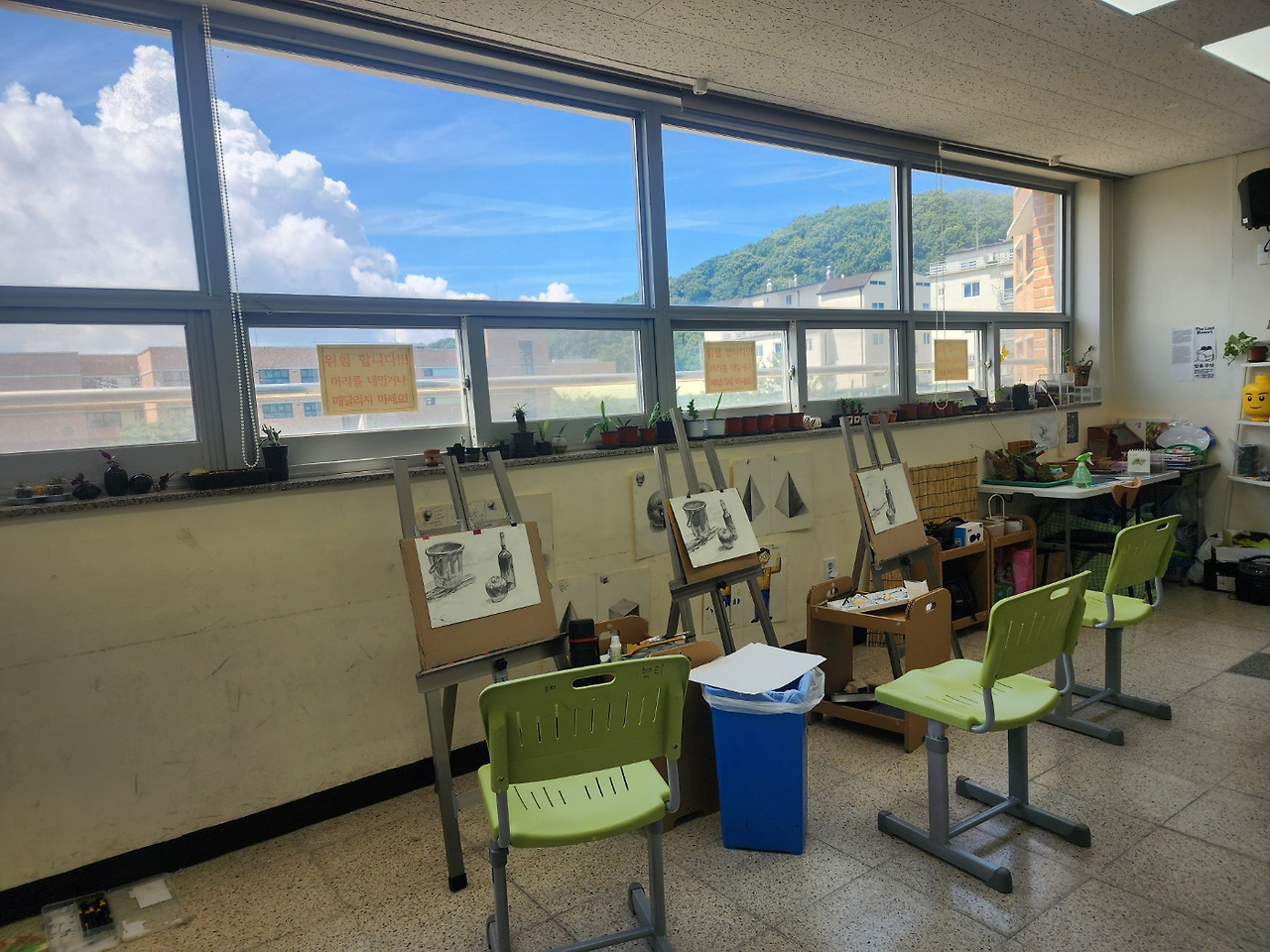 아, 그래서 학교는 여전히 네모나지만 가끔 책상을 둥글게 배치하느라고 이리저리 옮기는 소리는 그래도 전보다 많이 들리기는 한다.