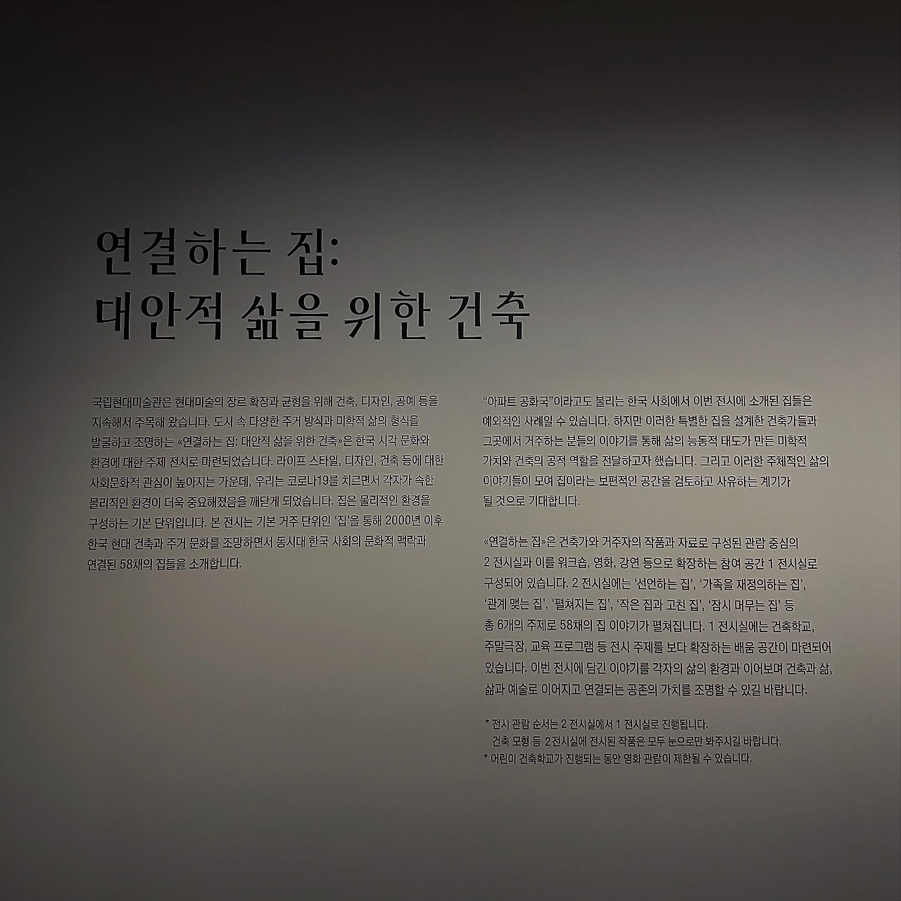 #국립현대미술관 #연결하는집 #개인적삶을위한건축 #건축 #전시 #전시리뷰 #전시비평