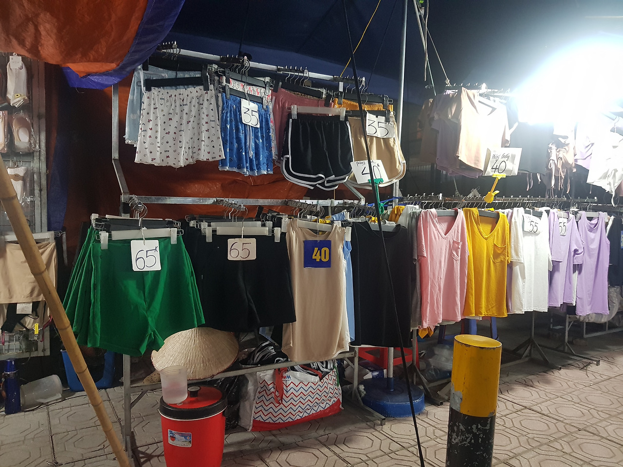 주변에 시장이 있는데 대학가 주변이라 구경하는 재미도 쏠쏠하다. 자세히 보면 옷이 40이라고 적혀있는데 40,000VND를 40K라 적고 있으며, 이를 더 줄여서 그냥 40이라고 적혀있는것이다. 40,000VND는 우리나라 돈으로는 약 2천원이다. 참 부담없는 착한 가격이다.