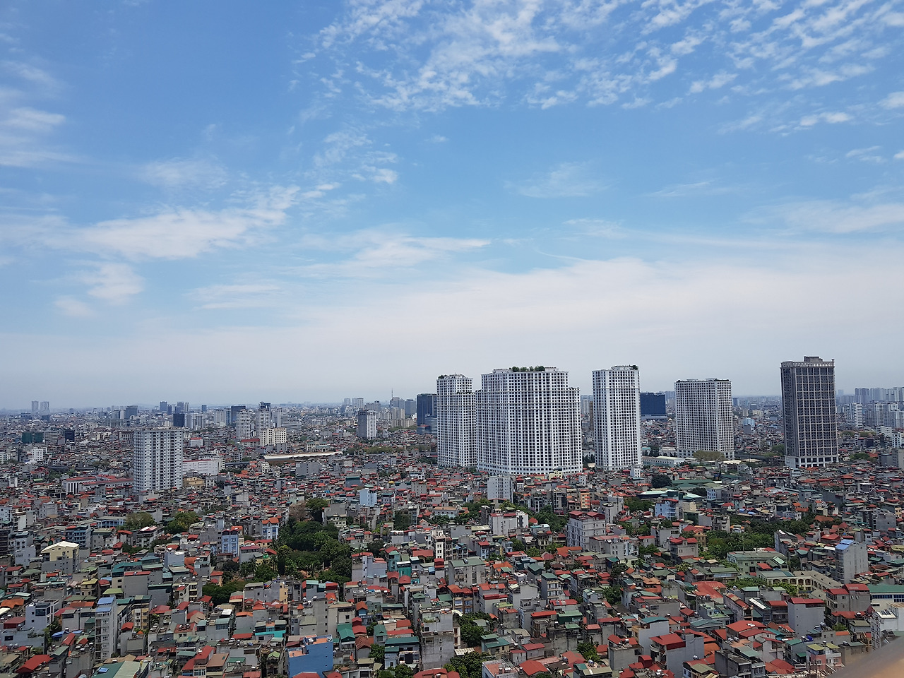 하노이에 이런 맑은 날씨와 파란 하늘을 만나는 경우는 그리 흔한 일은 아니므로 사진에 잘 담아두었다. 옹기종기 모여있는 집들과 높이 솟아있는 건물들이 하노이의 삶의 모습을 나타내준다.