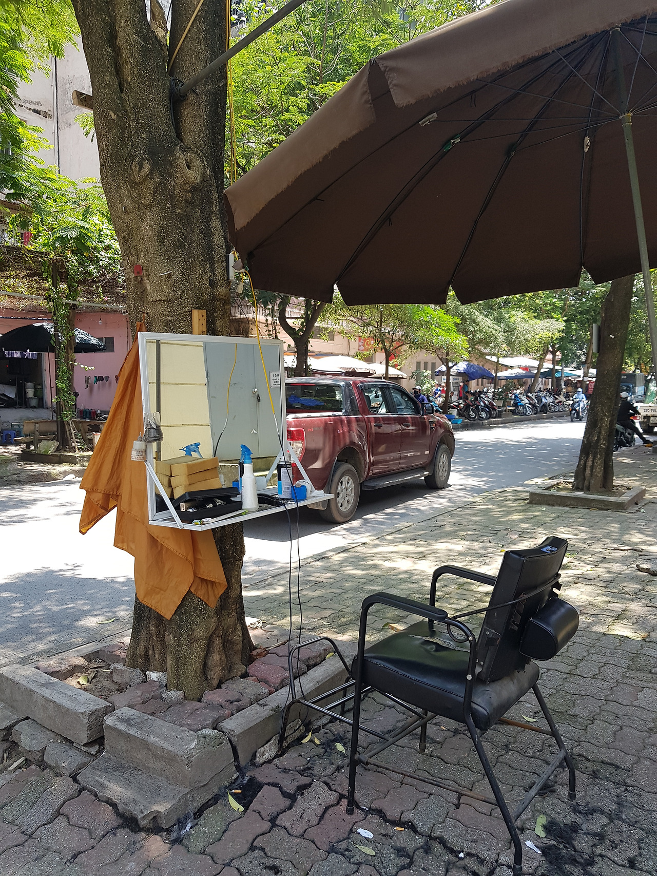 거리를 걷다보면 종종 거울과 의자가 인도에 있는것을 볼 수 있을 것이다. 바로 거리이발소이다. 신기하기는 하지만 그렇다고 거리 이발소를 이용하라고 추천해드리는것은 아니다. 필자도 아직 도전해보지는 못했다. 가격은 아마 로컬 미용실에 비해서도 더 저렴하리라 생각되지만 말이다.