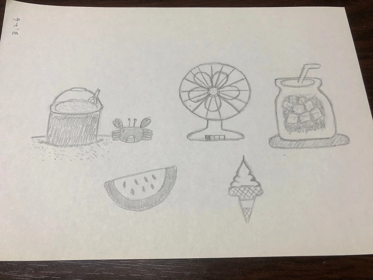 일주일에 한 번 그림 시간이 왔다. 오늘 그림의 주제는 여름 소품이었다. 모래성 만들기 세트와 꽃게, 선풍기, 아이스티를 그렸다. 댓글을 보니 선풍기가 복병이었다고 하는데 나는 아이스티가 복병이었다. 얼음 그리는 게 어려웠다. 그리고 이 밖에 떠오르는 소품도 그려보라고 해서 소품은 아니지만 수박과 소프트콘을 그려봤다. 지금은 봄인데 그림을 그리면서 여름이 성큼 다가올 것 같았다.
