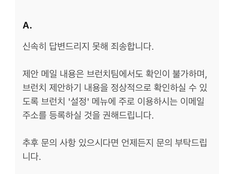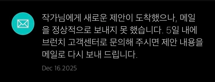 5일 내에 브런치 고객센터로 문의해 주시면 제안 내용을 메일로 다시 보내드립니다.