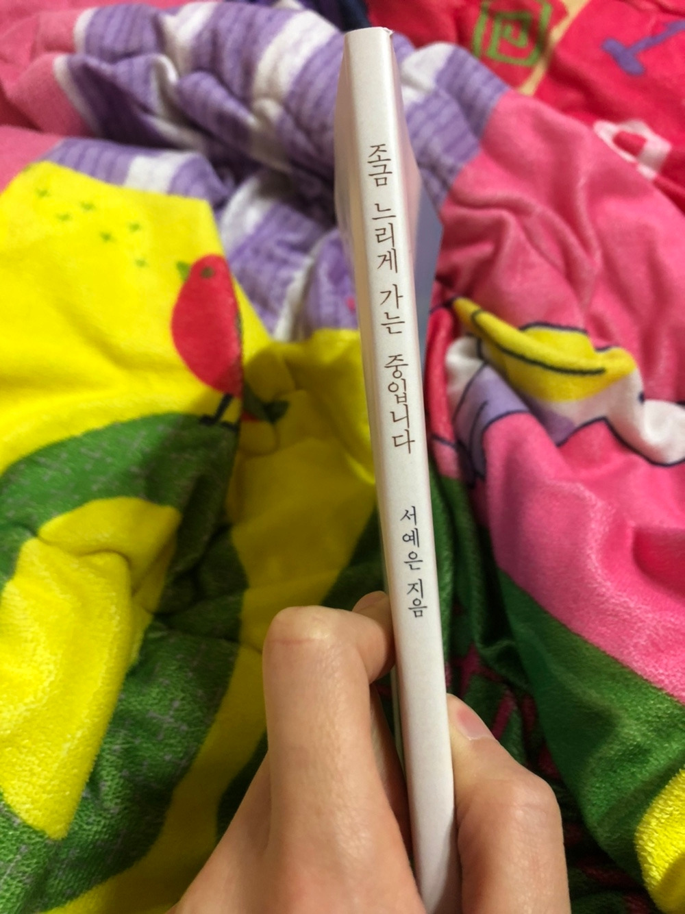 아무튼, 2020년의 결과물이 나의 첫 책으로 나와서 2021년을 좀 더 힘차게 시작할 수 있음에 감사하다. 아무것도 아닌 내가 글을 쓸 수 있도록 꿈을 주신 하나님께도 감사드린다. 글을 쓰기 힘들 때, 내가 쓴 책을 보며 큰 동기부여를 받을 수 있겠다는 생각이 든다. 이제 올해는 이 책을 출판하는 일만 남았다. 서두르지 않고 오늘 내가 할 수 있는 일을 하며 느리지만 조금씩 앞으로 나아가려고 한다. 내가 지은 첫 책의 제목대로.