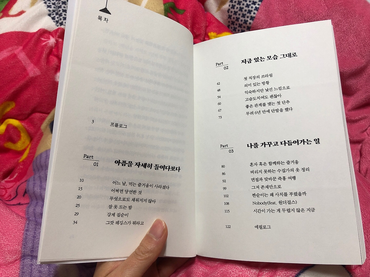 하지만 이렇게 오래 기다린 적은 처음이었다. 그것도 두 달이나 기다렸다. 도대체 내가 기다린 물건은 어떤 것이었을까? 바로 내가 쓴 나의 첫 책이었다. 작년 9월 7일부터 11월 8일까지 60일 동안 쏟았던 나의 노력의 결과물이 드디어 지난주 1월 9일 토요일에 배송되어 왔다. 내 손에 잡히는 나의 첫 책을 보면서 혼자 감동받았다. 표지 디자인부터 목차, 글씨체도 너무 마음에 든다. 예쁘게 잘 만들어주신 담당 편집자님께 감사드린다.