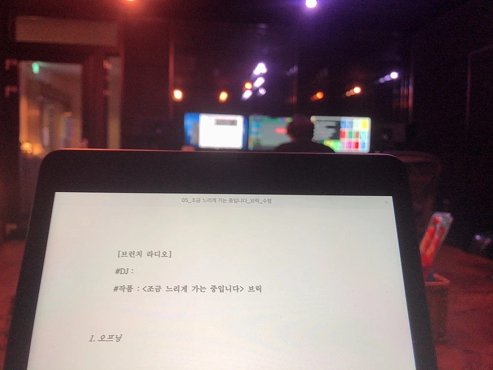 평소에 쓰는 에세이 형태의 글과 라디오 대본은 또 달랐다. 아는 노래도 별로 없었다. 너무 막막한 마음에 인터넷에 ‘라디오 대본 쓰는 법’을 검색했던 기억도 난다. 정말 감사했던 건, 이전 라디오 대본 원고 두 편을 참고 자료로 보내주셔서 가닥을 잡아갈 수 있었다. 또 시즌 1 라디오 방송을 멜론으로 들을 수 있어서 오프닝 때는 어떤 멘트로 말문을 여는지, 노래를 소개할 땐 어떤 말로 버무리는지 마음껏 참고할 수 있었다. 오프닝부터 시작해서 사이사이 무슨 노래를 하면 좋을지 고민하고 작성과 수정을 반복한 끝에, 마무리를 짓고 마감 기한 전에 제출했다. 다짐했던 대로 아슬아슬하게 제출하지 않고 여유롭게 제출할 수 있어서 감사했다.