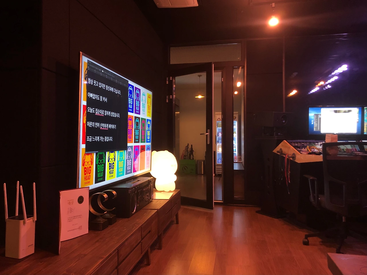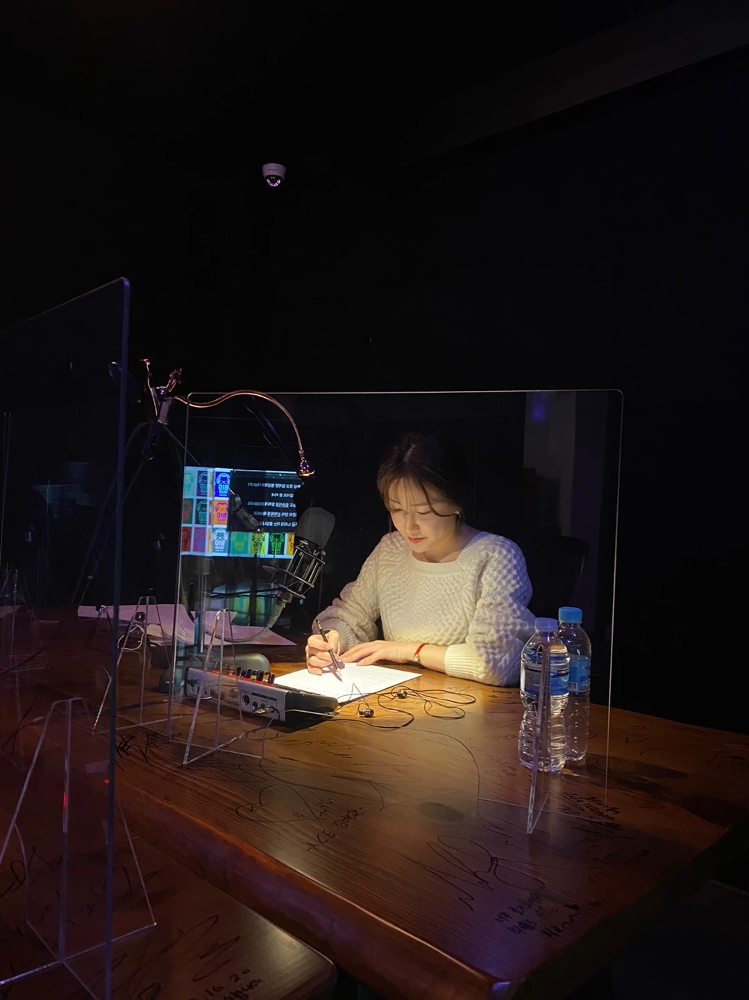 녹음실에 도착해서 처음 문을 열고 들어갔던 순간이 기억난다. 내가 잘 찾아온 곳이 맞나 반신반의하면서 들어갔었다. 긴장해서 굳어져있는 나에게 매니저님은 따뜻한 차를 건네주셨고 옆에 있는 아스크 작가님과 인사를 나눌 수 있도록 소개해주셨다. 매니저님은 편하게 사진을 찍어도 된다고 해주시고, 녹음 현장 속에 있는 나의 모습도 사진으로 남겨주셨다. 녹음을 진행하면서 나는 감지할 수 없는 작은 부분도 녹음 감독님은 캐치하셨고, 끊고 다시 녹음을 이어가시는 꼼꼼한 모습을 보며 ‘이것이 프로의 세계구나’하는 생각이 들었다. 내 글과 선곡이 좋다고 해주신 것도 너무 감사했다.
