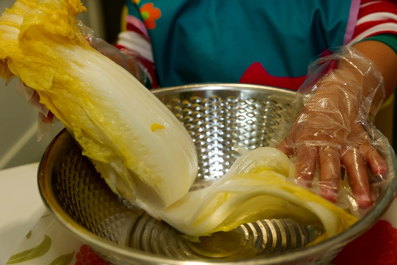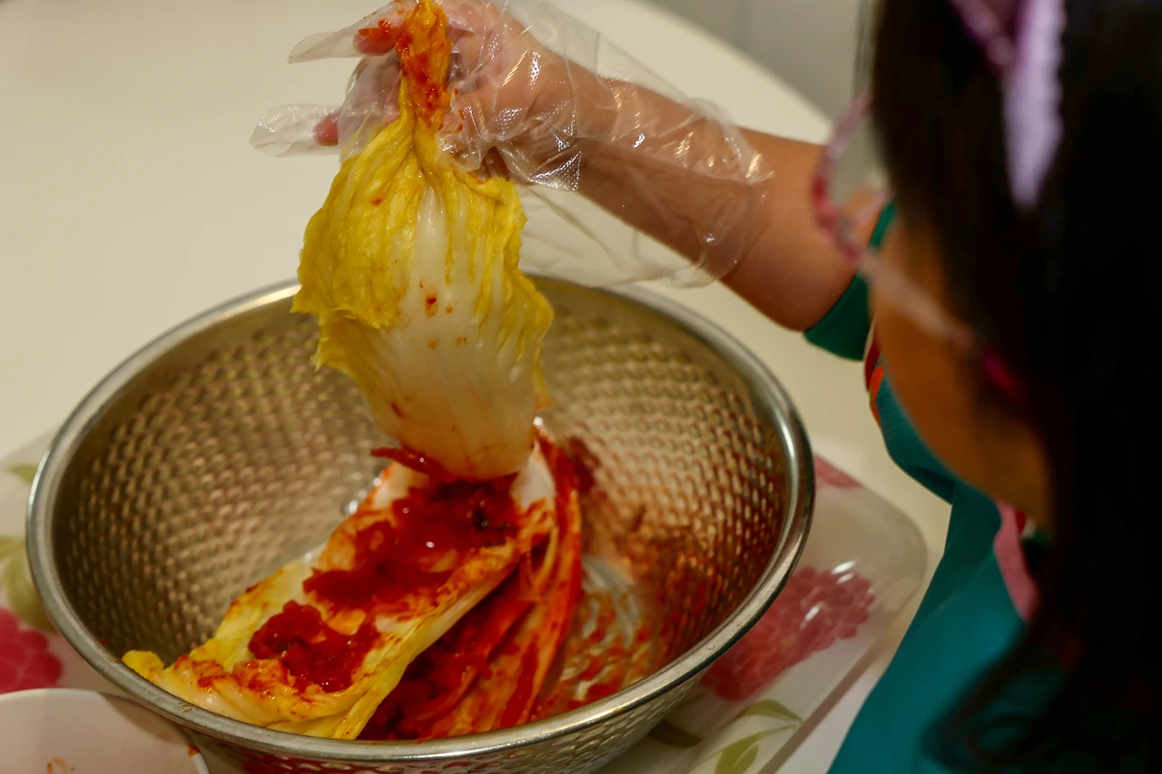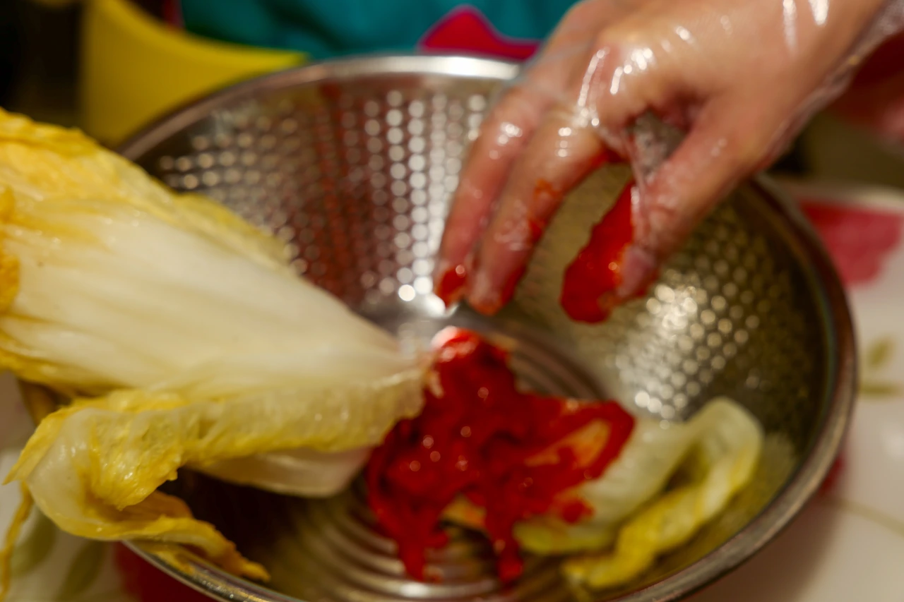 아이들이 먹을 수 있게 고추 양념이 아닌 감 홍시로 만든 김장김치다. 예전에 TV를 통해서 보았던 스님들의 김장이 생각이 문득 나게 되었다. 분명 스님들은 맵고 짠 음식을 먹게 되면 감정이 생기게 되어 되도록이면 고추와 마늘을 넣지 않은 김치를 만든다 하였다. 그래도 한국 사람들은 붉은 김치가 익숙하다 보니, 그 대안으로 선택한 양념이 감 홍시라 했다. 따로 그 맛이 생각나지는 않았으나, 분명 감 홍사의 부드럽고 달콤한 맛을 만들어내지 않을까 싶었다.