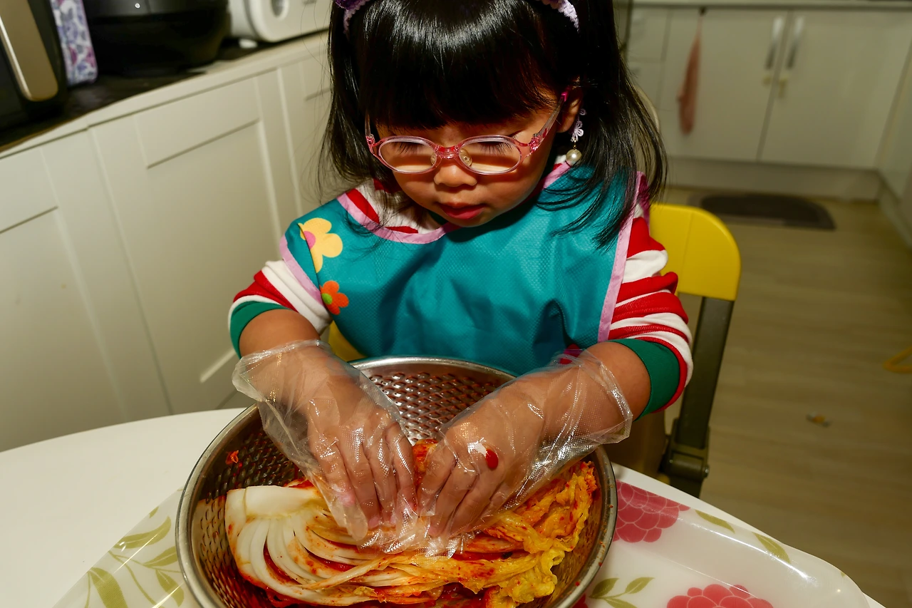 맞벌이를 하다 보니 김장을 하는 추억을 아이들에게 만들어주질 못했다. 당연히 김장김치에 돼지고기 수육을 삶아 먹는 그런 재미도 경험해보지 못하였다. 거기다 김치를 그다지 좋아하지 않는 아빠 덕분인지, 집에서 김치를 담가 먹는 일이 자주 있지는 않았다. 그래도 이런 추억이 한 번쯤은 있어야겠단 생각을 하였는데, 마침 소피아가 다니는 어린이 집에서 김장 재료를 보내왔다.