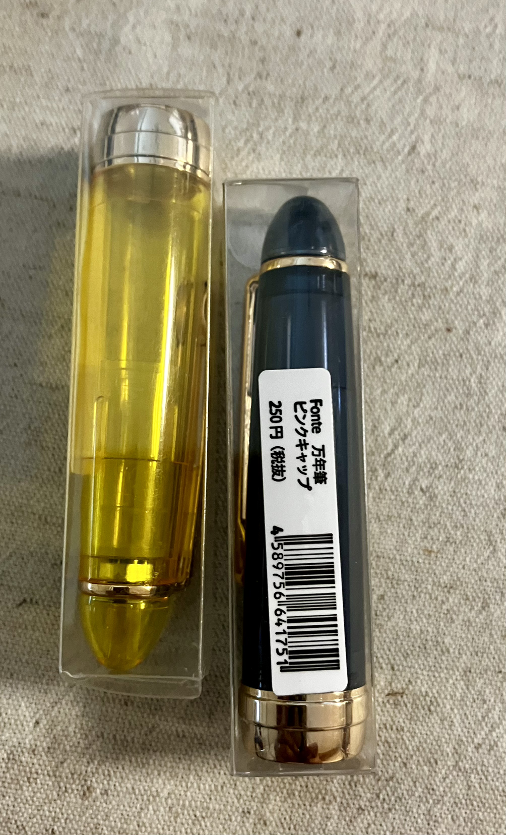 네. 이 제품의 이름은 Fonte Custom 펜입니다. 만년필 / 붓펜 / 볼펜 등 원하는 느낌으로, 원하는 뚜껑의 조합, 원하는 잉크의 조합으로 자신만의 펜을 만들 수 있는 제품입니다. 가격은 펜이 800엔, 뚜껑이 250엔 정도이니, 한화로 1만 원 정도면 구입을 할 수 있는 제품입니다. 일반 볼펜이 만원 정도 하는 가격이니, 만원으로 자신만의 볼펜을 만들 수 있다는 장점을 가질 수 있습니다.