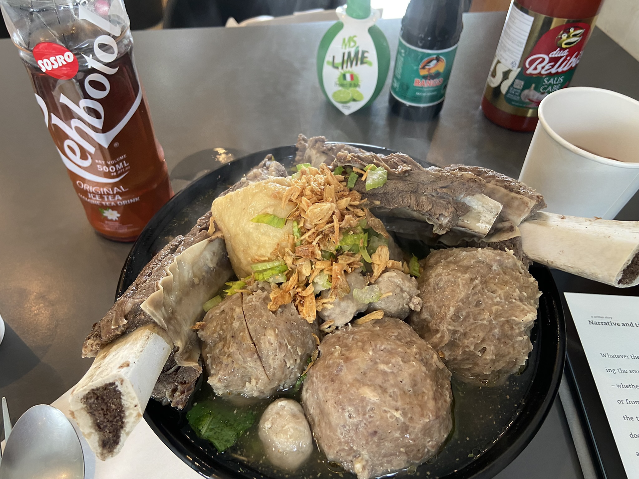 그래도 커다란 고기 덩어링에 뼈 몇 덩어리가 섞여 있으니 마치 인도네시아에서 먹던 박소와 숩분뚝을 섞어서 먹는 느낌이었다. 맛은 약간 차이가 있었지만 그래도 어느정도 비슷한 느낌이었다. 마치 한국에 오면서 인도네시아 음식이 다국적 음식으로 변한 느낌이었다.