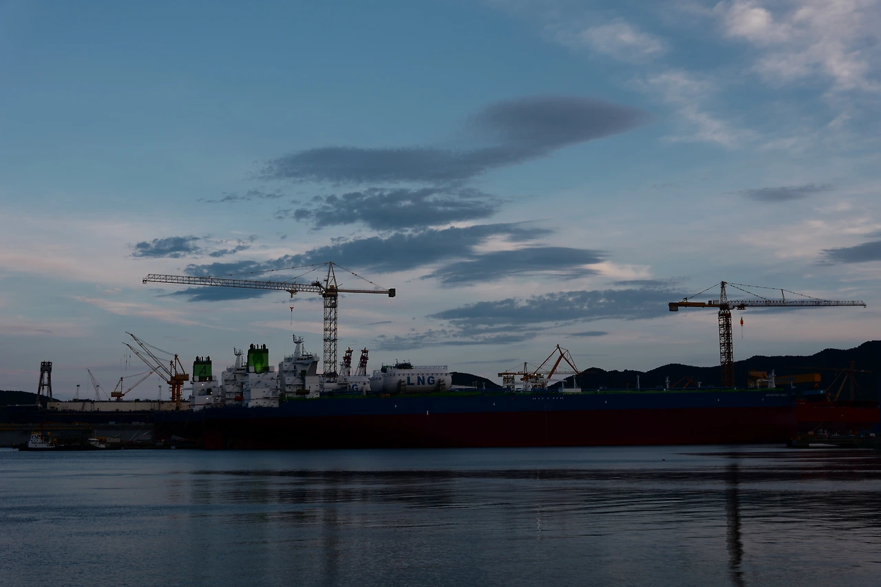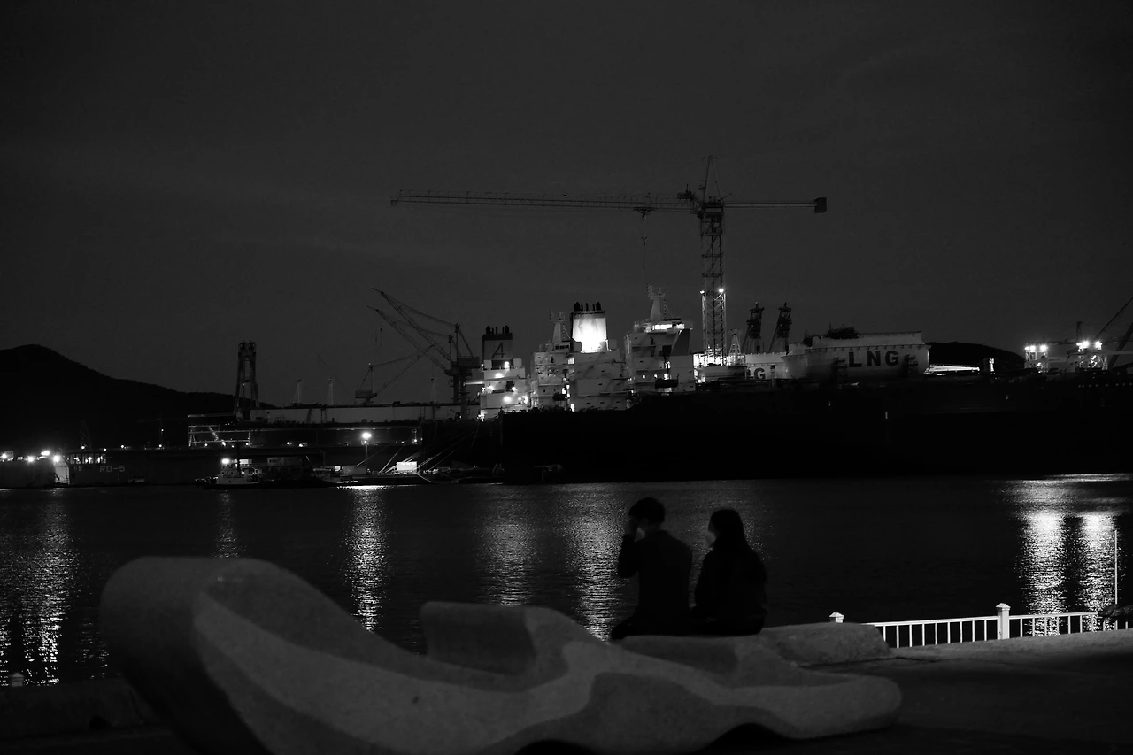 낮에 해수욕장에서 물놀이와 모래놀이를 한 뒤, 이모님 댁 근처 대우조선 본사 근처로 간다. LNG선 건조 마무리 중이라 그런지 노을과 함께 멋진 풍경을 만들어 낸다. 거제도는 참 멋진 곳이다. 그리고 육지와는 다른 날씨를 만들어낸다. 이 날은 여전히 서울과 중부지방은 폭우로 힘들어하였지만, 거제도는 참으로 청명한 날씨를 보여준다. 이런 날씨 덕분에 멋진 사진을 많이 만들어낸다. 해가 막 떨어질 시점에 대우조선 방파제 앞에 도착하여 시간 별로 해가 지는 모습을 지켜볼 수 있었다. 하늘이 만들어낸 멋진 물감. 그리고, 그것을 찍을 수 있는 카메라를 들고 있다는 것이 참 행복하다 느낄 수 있는 하루였다. 이 날의 물감이 만들어낸 색은 내일은 볼 수 없는 물감이다. 하지만 우리는 카메라라는 도구가 있기 때문에 이 멋진 광경을 충분히 담을 수 있다.