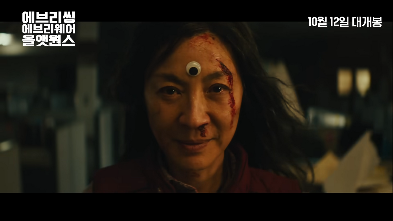 허무주의를 반동인물로 내세운 영화라 하면 난 역시 '에브리씽 에브리웨어 올 앳 원스'가 떠오른다. 영화 속 빌런인 조부 투파키는 '모든 것을 보았기에 모든 것을 무가치하게 여기는' 허무주의적 초인이다. 이에 맞서는 어머니 에블린은 모든 것을 봄으로써 딸을 이해하게 됐지만 오히려 모든 것을 선물로 여길 수 있게 된 히어로이다. 에블린은 어떻게 딸과 반대의 길을 걷게 됐을까? 영화 속에서 에블린은 수많은 멀티버스 속 남편 웨이먼드를 보고 이를 깨닫게 된다. '온화하게 사는 날 바보로 여기겠지만, 이는 사실 전략적 선택이다'란 웨이먼드의 말을 듣고 에블린은 웨이먼드의 온화함이 불러온 긍정적인 효과들을 되돌아보게 된다. 에블린은 혼자 깨달음을 얻은 게 아니라 네오가 트리니티에 대한 감정을 좇았듯 사랑하는 사람을 돌아보며 깨달음을 얻었다. 그녀가 '당신처럼 싸우는 법을 배우는 중이야'라며 구글아이를 이마에 붙이는 장면은 에블린이 의미없는 세탁물에 구글아이를 붙이며 가치를 부여하는 웨이먼드처럼 만물에 감사하는 존재가 됐음을 말한다.