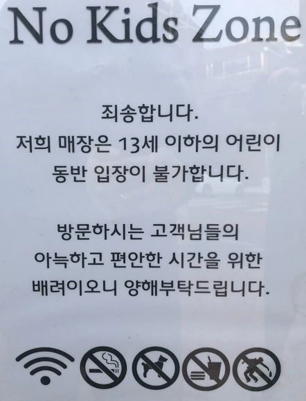 ▲ 노 키즈 존 어느 카페의 노 키즈 존을 알리는 문구