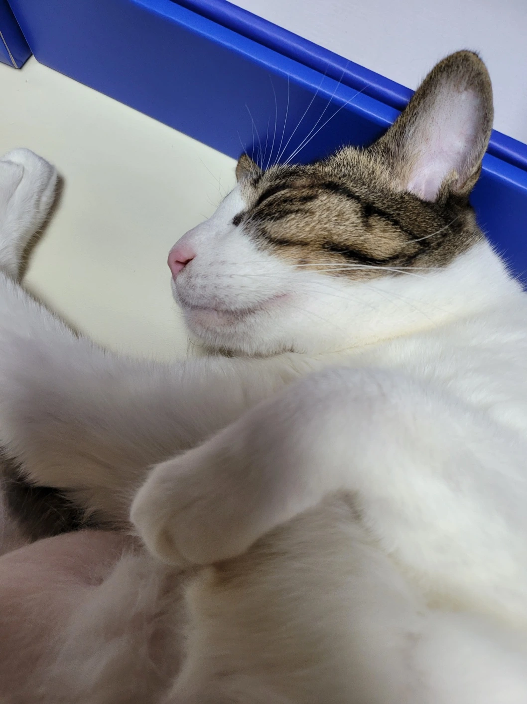 둘째냥 : 안 해. 나 이제 편하게 잘 거니까 깨우지 말라옹.