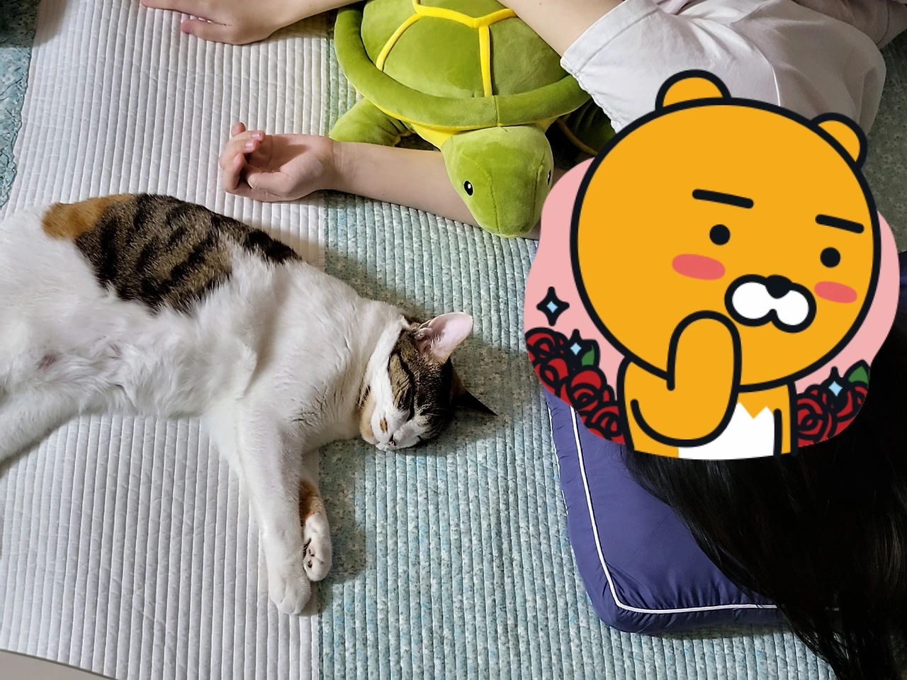“으으응~ 거실은 저 골칫덩거리들 털 날려서 못 자. 가려워.”