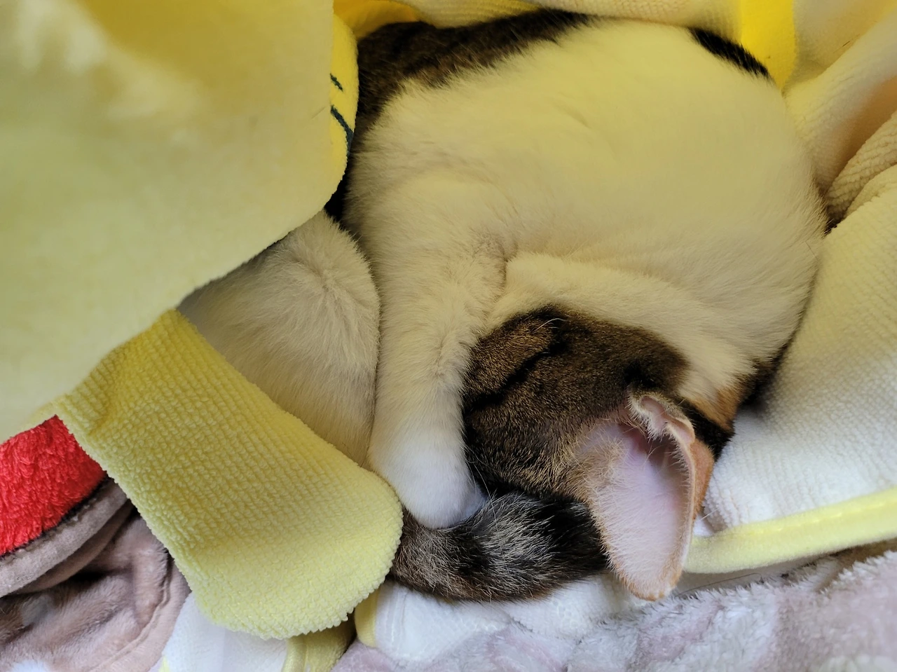 (무풍으로 26도 밖에 안 했는데 춥다고 이불을 파고들어 자는 ‘신입’)