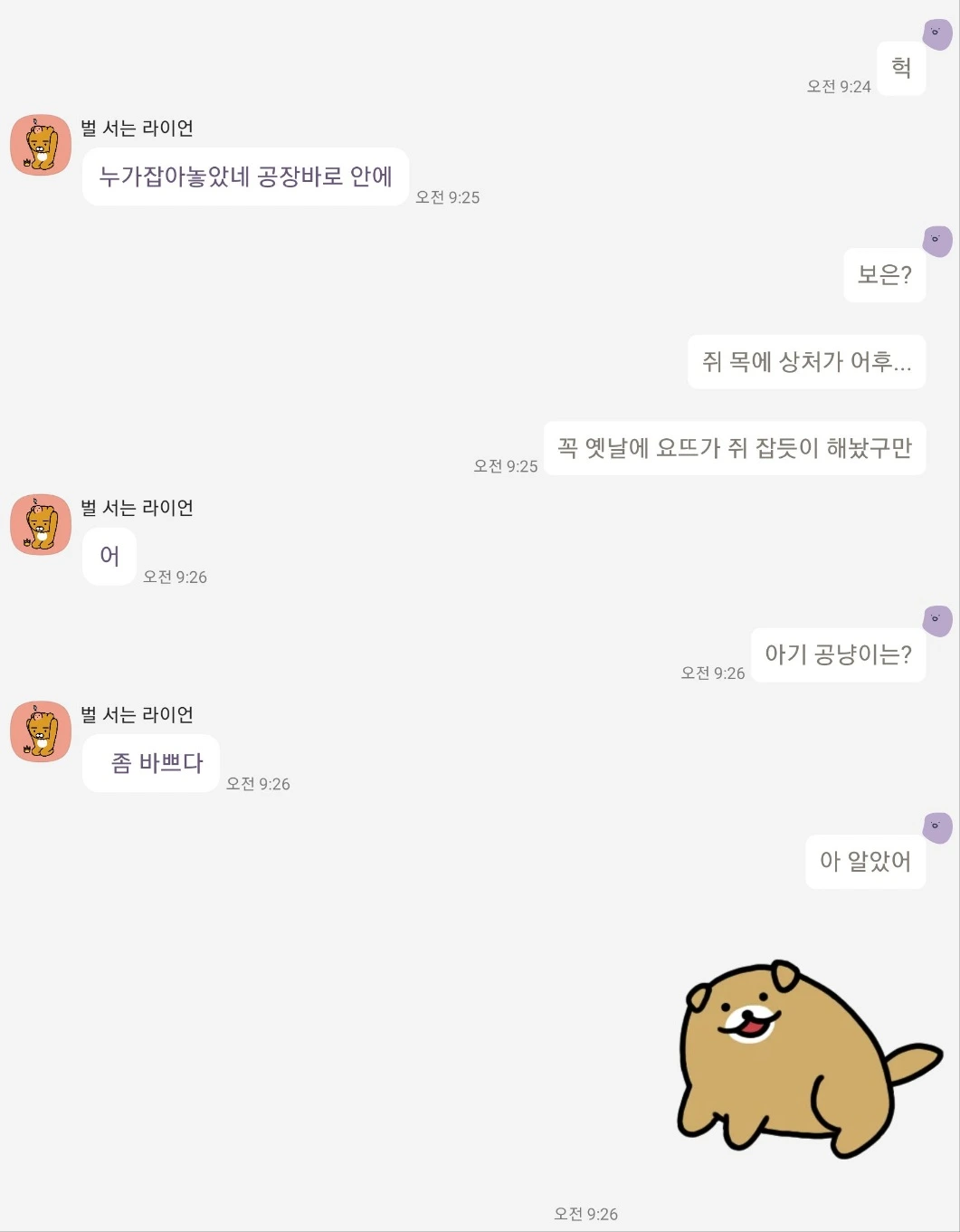 “몰라! 생각만 해도 화난다. 지금 공냥이가 백번 낫지. 으휴~”
