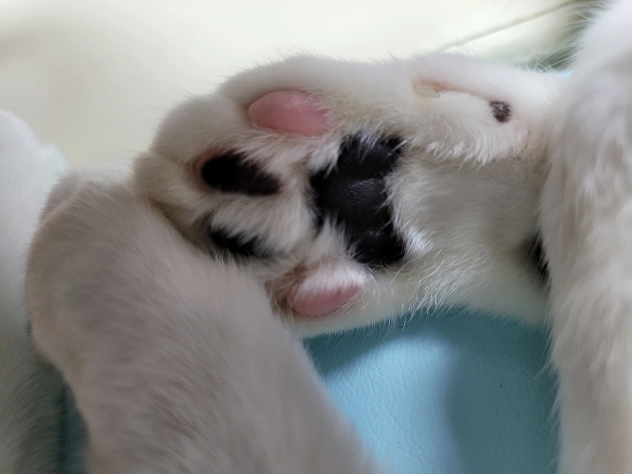 그래서 애들이 같이 자려고 누워 있을 때, 아주 조심히 눈치 보며 뒷발바닥 꼬순내를 맡는다.(뒷발톱은 마모가 많이 되어 공격당해도 보통은 상처 날 정도는 아니다. 중간에 고양이가 깼는지 확인할 수도 있다.)