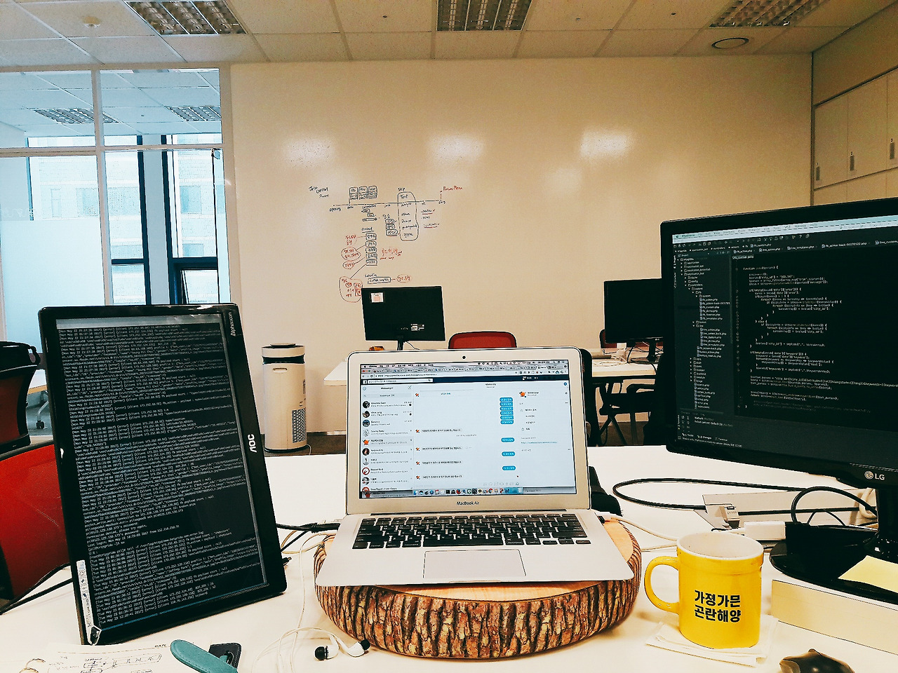 선물 받은 모니터를 이용해서 트리플 모니터를 세팅해봤습니다. 이제야 개발자 자리 같습니다..
