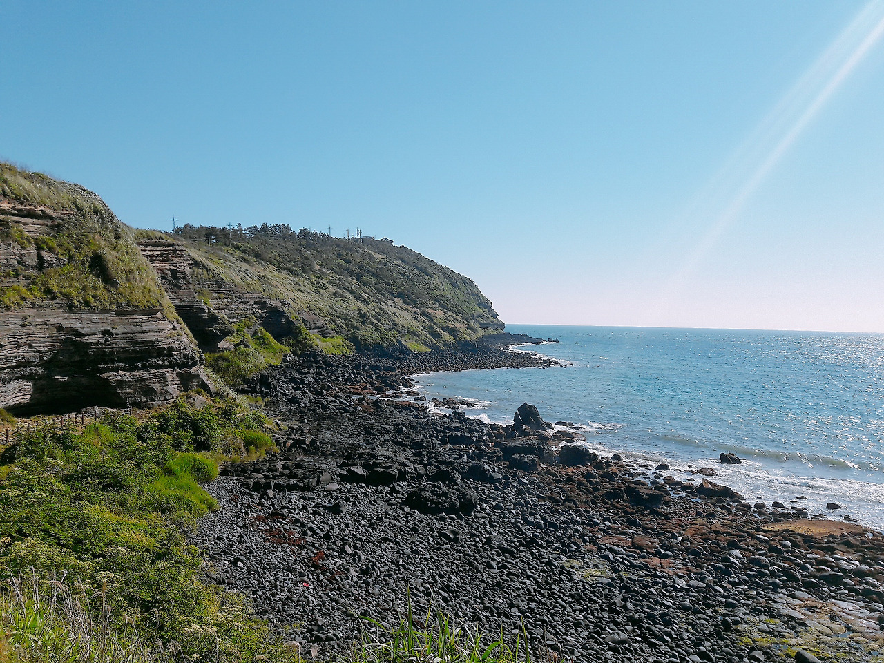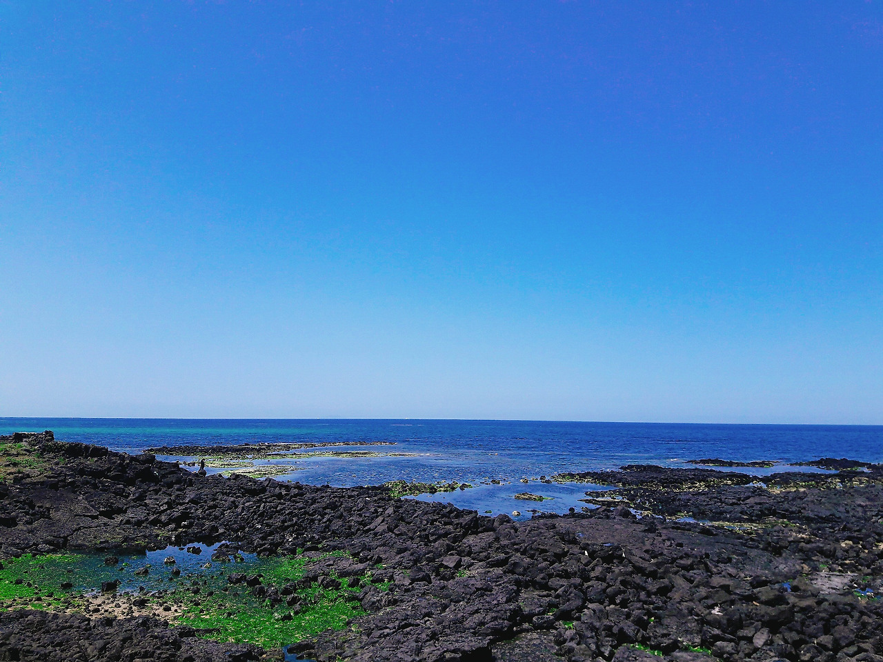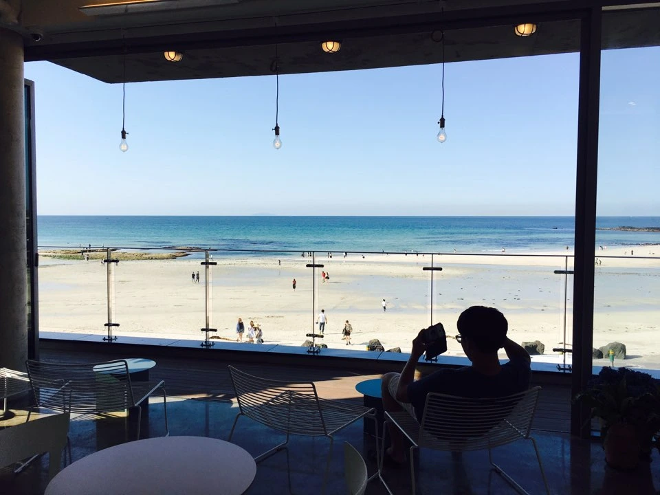 바다가 가까이에 있어서 너무 좋았습니다. 날도 좋고, 푸른 바다색도 너무 이쁘네요. 제주에 오길 잘 한 거 같다고 생각이 들었습니다.