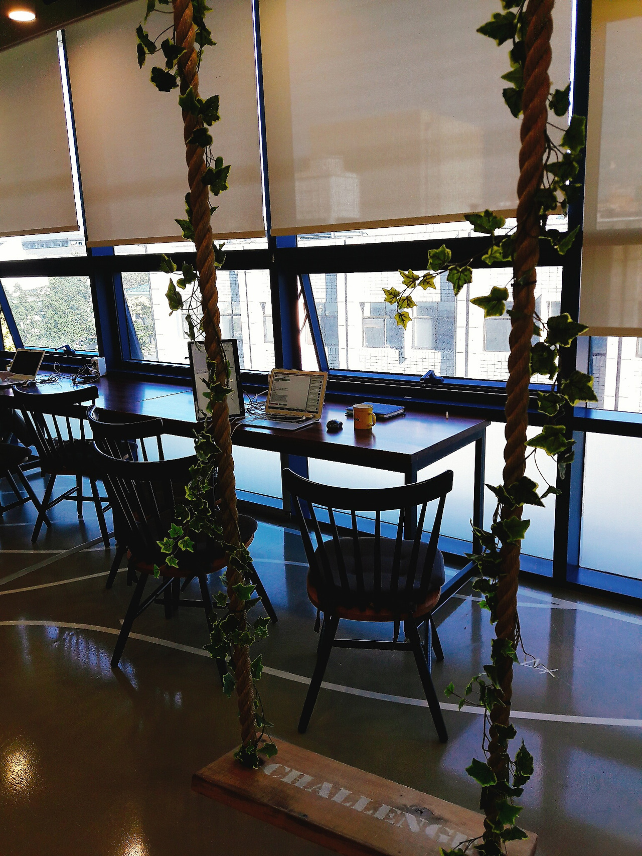 처음으로 체류존을 벗어나 창가 쪽 자리에 앉아 봤습니다. 사무실이 따로 없는 저는 주로 동네 카페에서 홀로 작업을 해서 인지 사무공간에 있을 때 보다 안정감 있고 좋았습니다. 창가 쪽 자리는 집중하기에 참 좋은 자리인 거 같습니다.