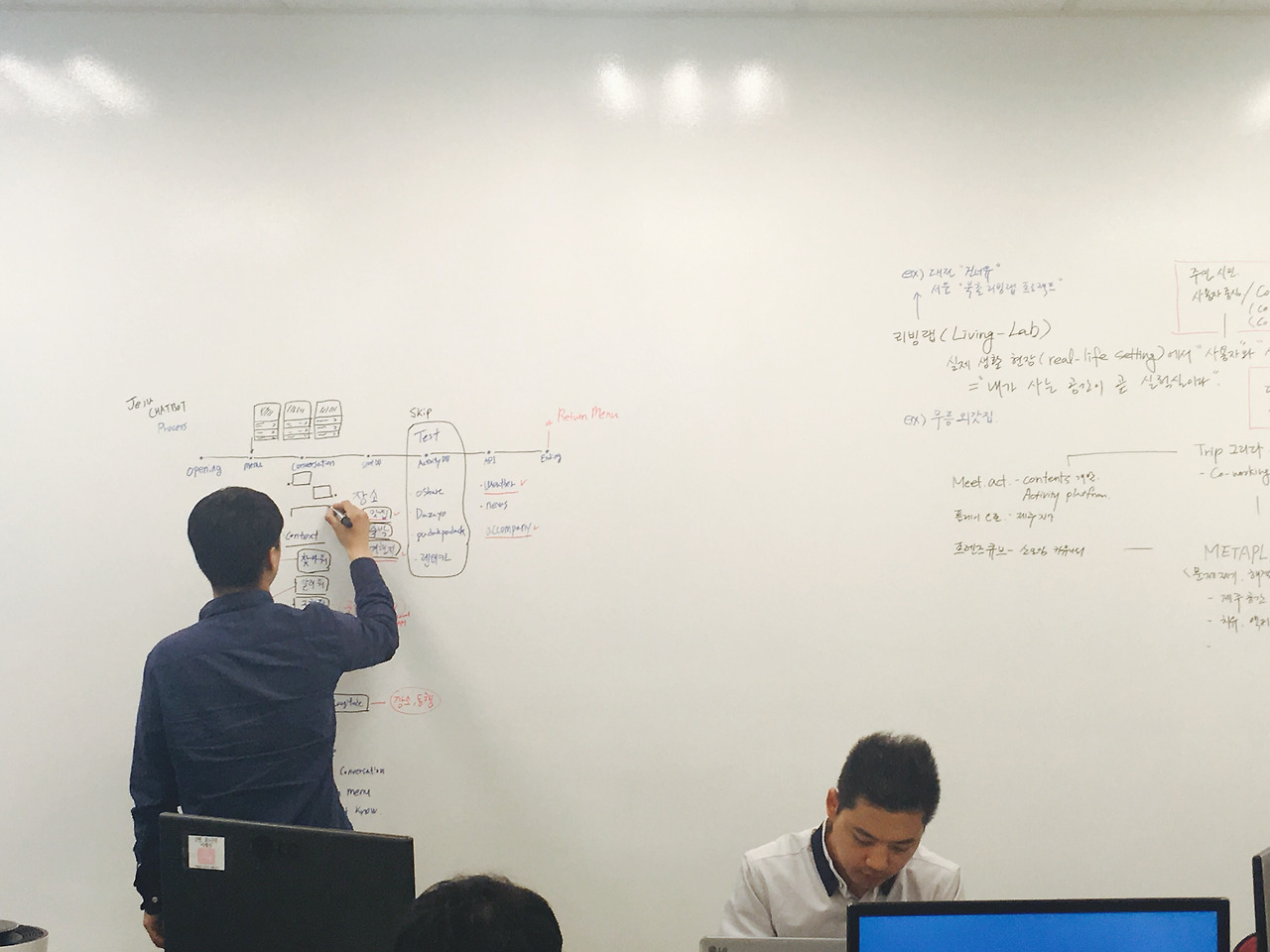 오늘은 챗봇 설계를 건너편 벽에 작성을 하면서 정리해 봤습니다. 구체화되면 바로 개발을 진행할 예정입니다.
