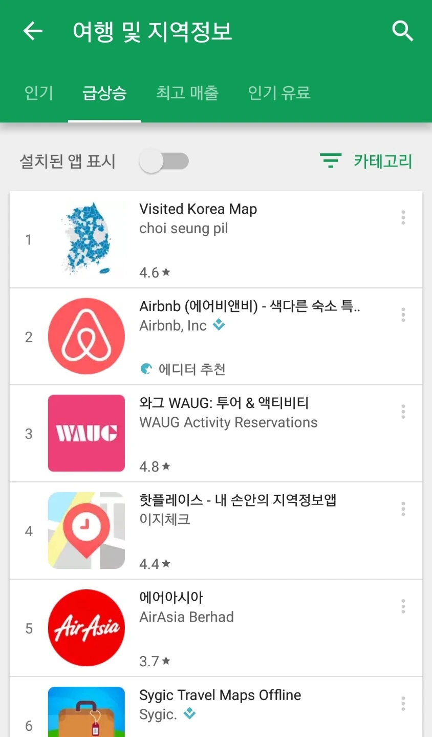 대한민국 어디까지 가봤니 앱스토어 1위 기염