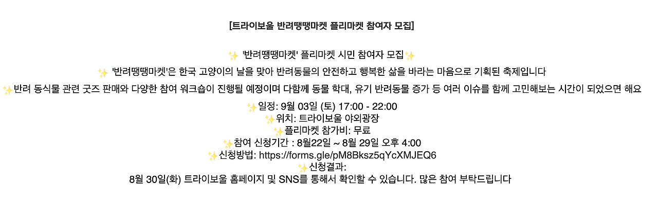 그중 반가운 소식이 들려왔다. 반려동물을 주제로 열리는 한 나이트마켓에서 참가 신청이 확정된 것이다. 대부분 마켓 등이 참가비가 있는 데 반해 이곳은 모두 무료였고, 부스도 제공해주는 형태였다. 사실 우린 아직 아무런 팔 것도, 내세울 것도 없었지만 안돼도 본전이지 하는 생각에 무작정 신청했던 것이 덜컥 되어버렸다. 자, 그럼 이제부터 뭘 할지 고민해봐야지!