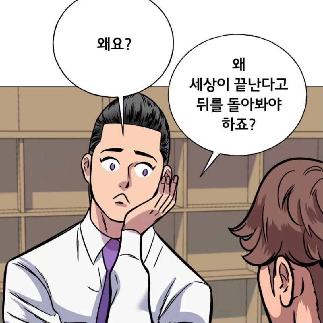 이 웹툰을 본 사람이 많지 않을 테니 배경 설명을 하자면, 한 달 안에 지구가 블랙홀에 빨려 들어가 꼼짝없이 망하게 생긴 상황이다. 이런 상황에서 보험사에서 일하는 채대금 대리가 블랙홀 보장 보험 상품을 제안하며 저렇게 말한 것이다.