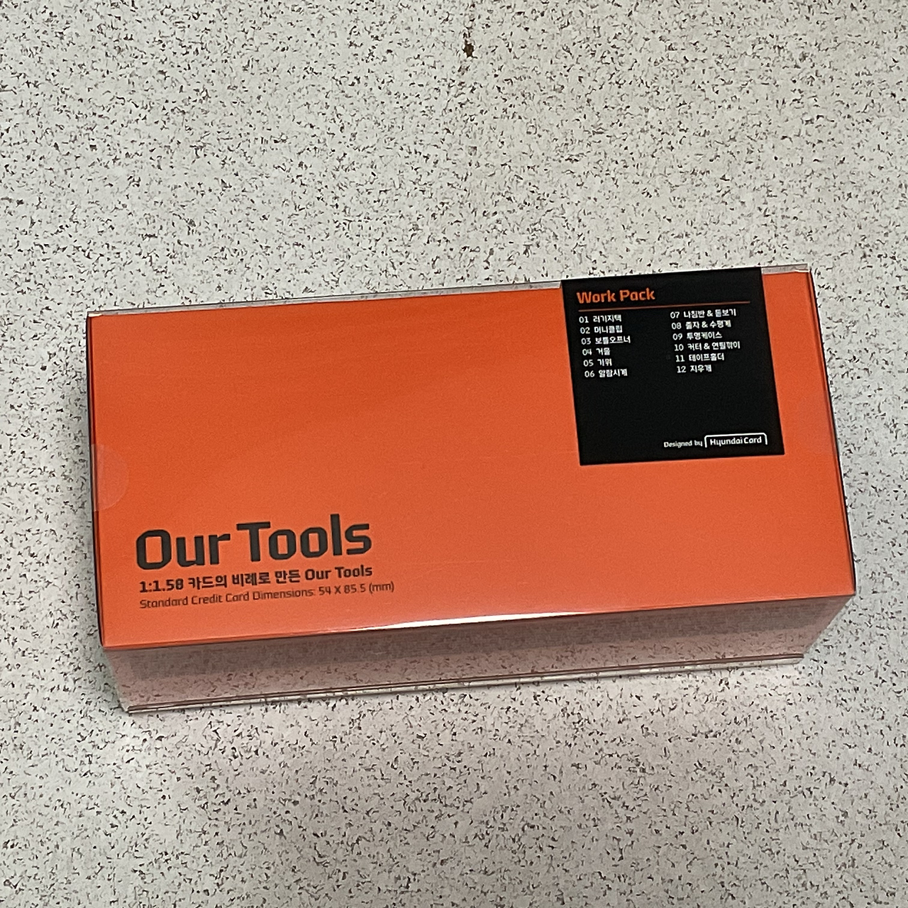 그리고 이번엔 굿즈를 출시했다. 카드 비례를 그대로 담아 만든 굿즈로 마치 현대카드 입사시에 받을 수 있을 것 같은 웰컴 키트처럼 만들어졌다. 이름도 마저도 Our Tools이다.