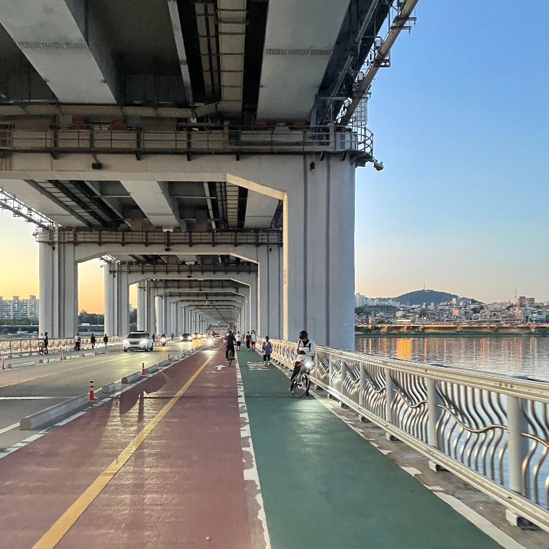 바람을 가르며 페달을 밟는 일은 또한 회사에서 지내는 사이 떠오른 쓸데없는 잡념이나 스트레스를 떠나보내는 시간이기도 하다. 꽤 빠른 속도로 별 탈 없이 정해진 거리를 이동해야 하는 일이라 오롯이 앞을 보며 집중해야 하는 점도 좋다. 말로만 듣던 명상을 해본 적은 없지만 자전거를 타는 동안 머릿속은 그와 비슷하지 않을까 추측하고 있다.