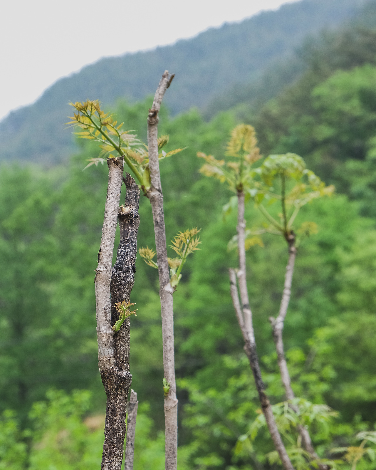 할아버지의 밤산, 벚꽃이 질 무렵부터 시작된 고사리 수확은 초여름에 끝난다. 고사리 수확을 하러 올 때마다 밤산 입구에 심겨진 두릅 나무에서 두릅을 툭툭 꺾어와 먹었다. 해가 길어지고 봄비가 두어차례 굵게 내리면 두릅이 자라는 속도도 점점 빨라진다. 두릅을 먹어치우는 속도가 자라나는 속도에 따라 잡히면 계절의 문턱에 닿은 것이다. 어느새 훌쩍 자라 활짝 펴버린 두릅도 많았다.