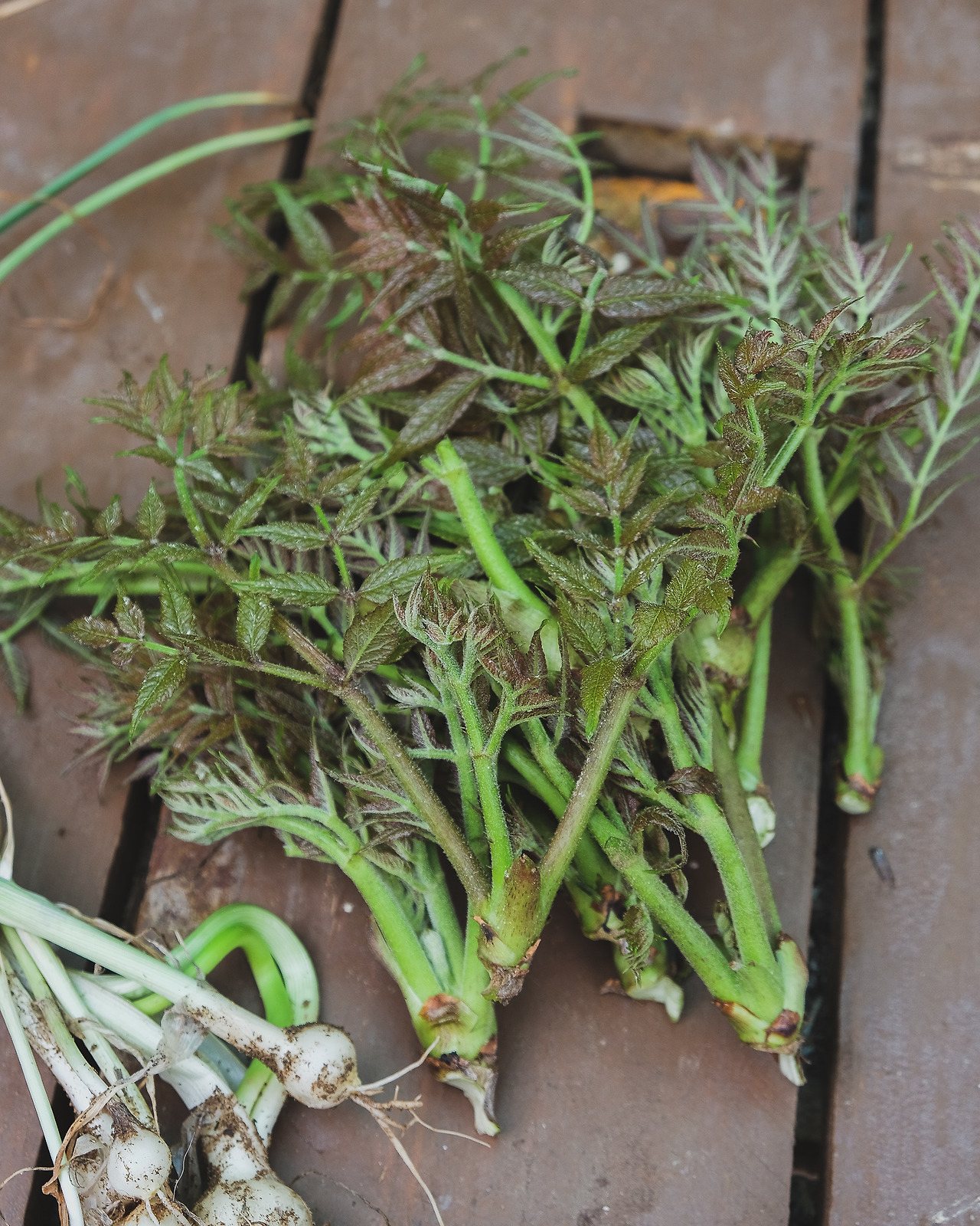 그나마 덜 핀 것과 옆순들을 땄다. 발 아래, 무릎 가까이에는 훅 자란 산달래가 보였다.