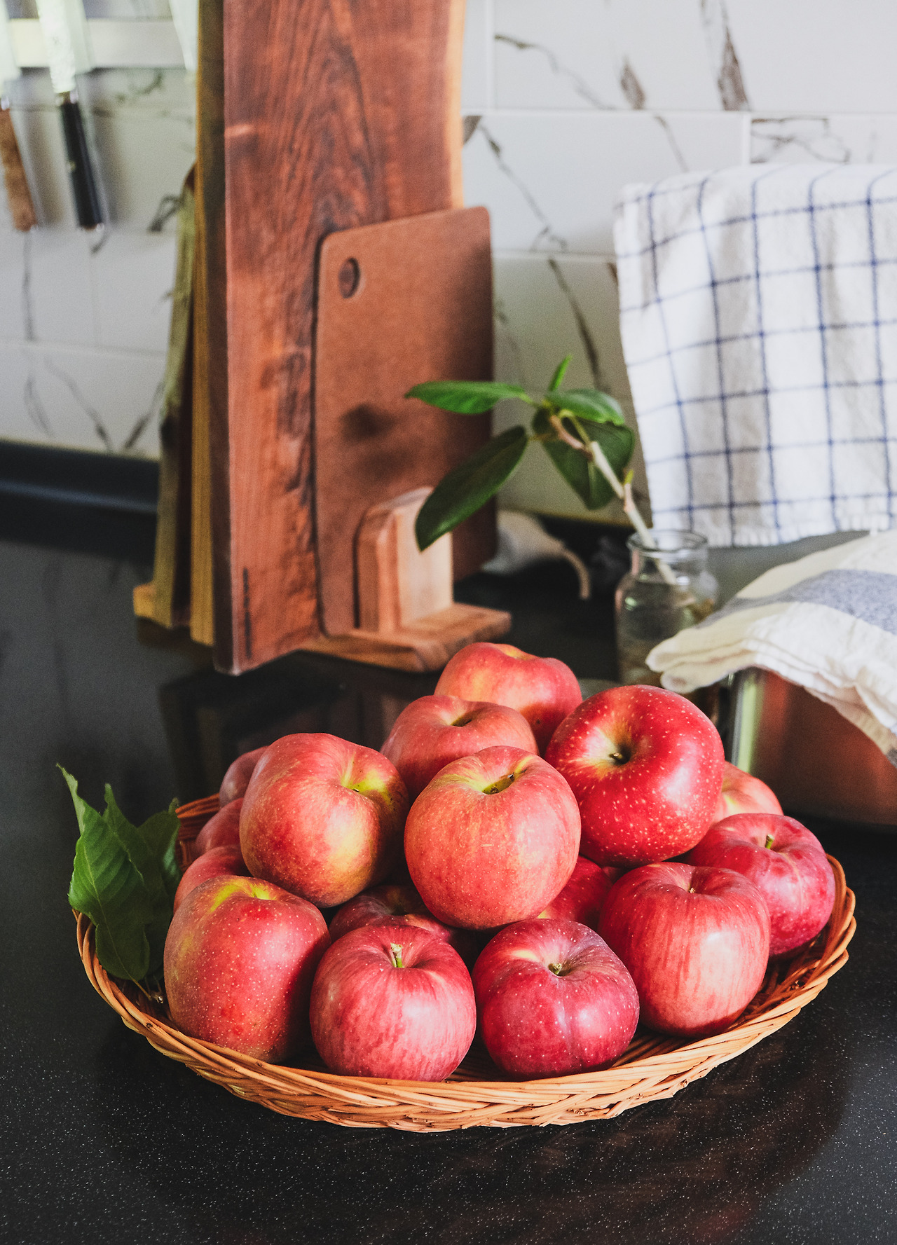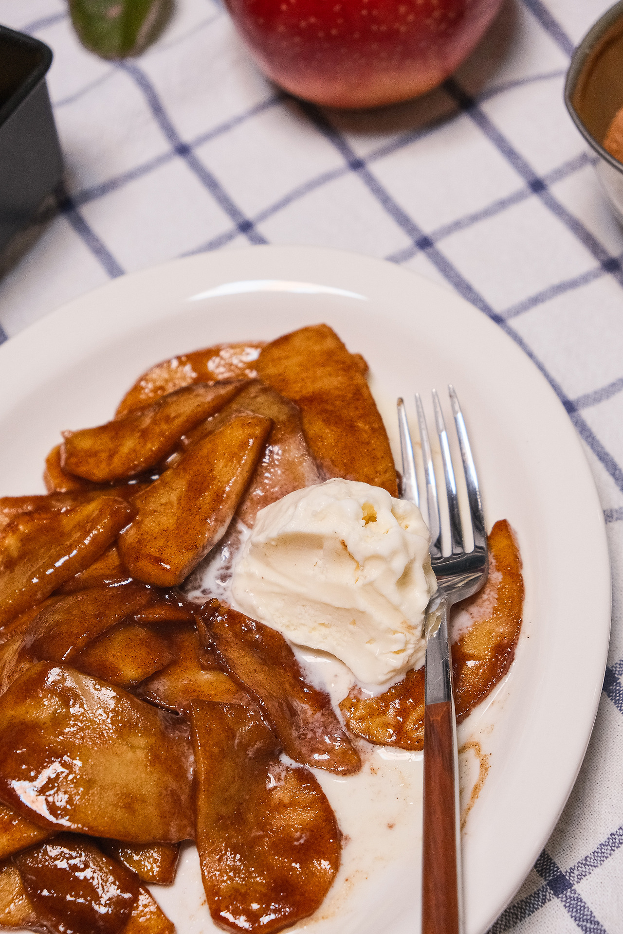 그냥 씻어서 잘라먹던 사과에도 정성을 담아보기로 했다. 사과를 반으로 자르고 씨를 빼서 얇게 슬라이스한 뒤, 계피 설탕을 뿌려 구웠다. 더없이 간단한 디저트지만 과정 하나하나에 정성을 들여 조리하니 만드는 시간 자체가 힐링이다. 구운 사과를 바닐라 아이스크림과 함께 오목한 접시에 담았다. 사과의 진한 풍미가 느껴지는 차갑고도 따뜻한 디저트다.