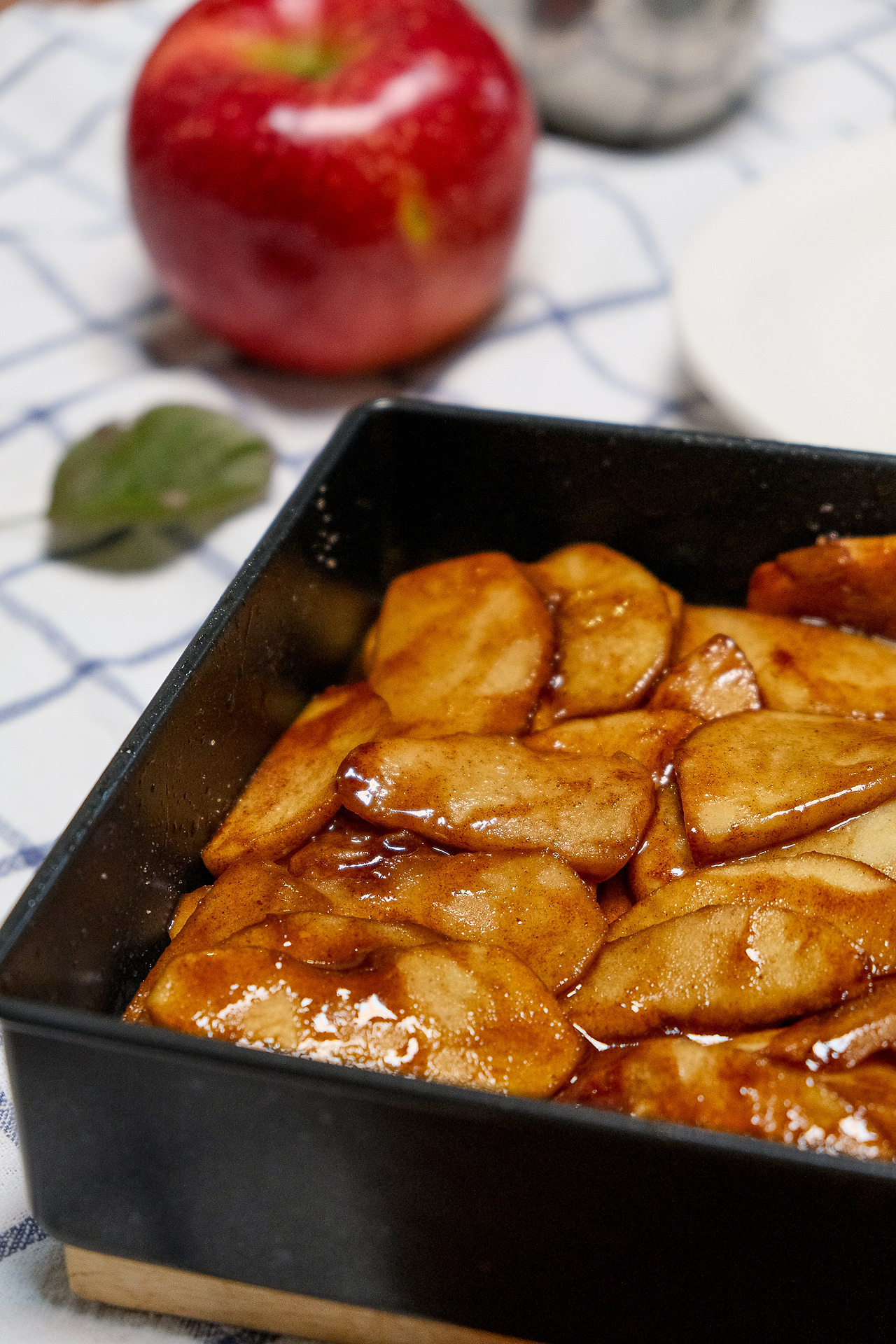 - 씻어서 슬라이스한 사과에 녹인 버터를 넣고 섞는다.