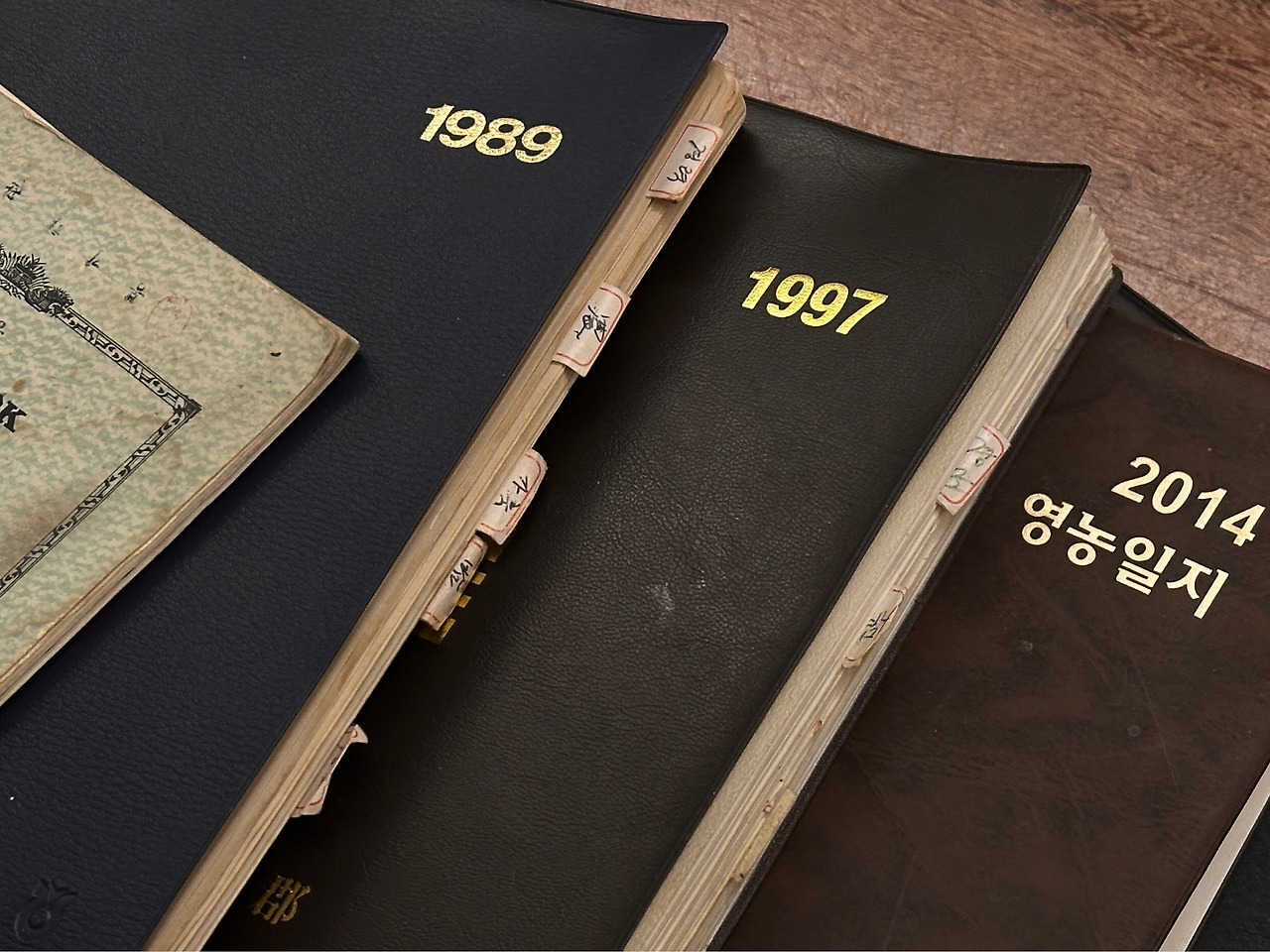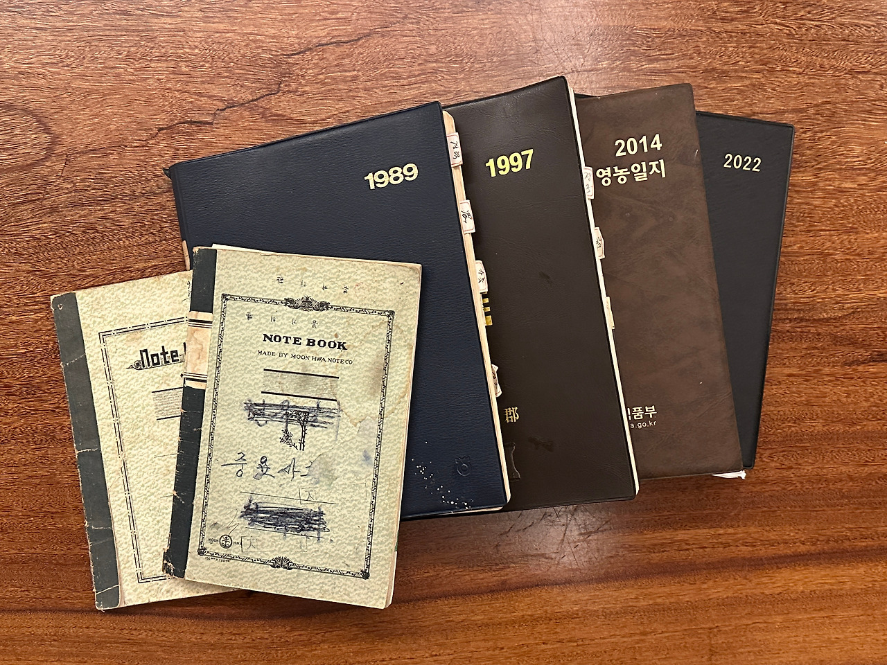 외할아버지의 노트는 군이나 기업에서 나누어 주던 노트였다. 그 안에는 농사일지부터 마을의 경조사, 밤 수확량까지 정리되어 있으며 색인 작업도 되어있다. 기록은 1989년 농협 노트부터 남아있지만, 그 이전에도 꾸준히 써오셨다고 한다. 89년 이전의 노트들은 안타깝게도 대부분 분실했다고 하셨다.
