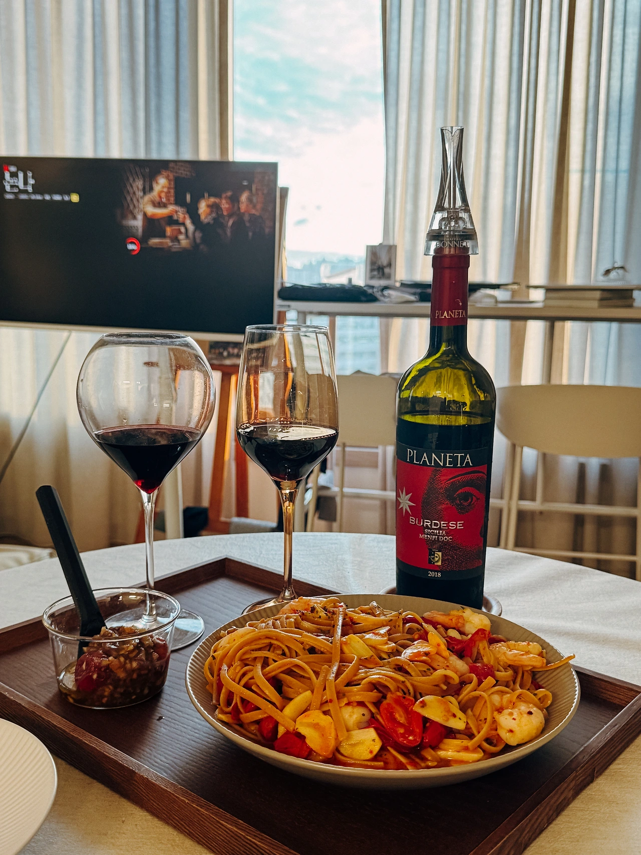 전날 친구가 선물로 건넨 시칠리안 와인 한잔을 따르고, 냉장고에서 시들어가고 있는 새우와 방울토마토를 구출하기 위해 만든 파스타를 입안에서 오물대며 넷플릭스에서 영화 <논나(Nonnas)>를 봤다.