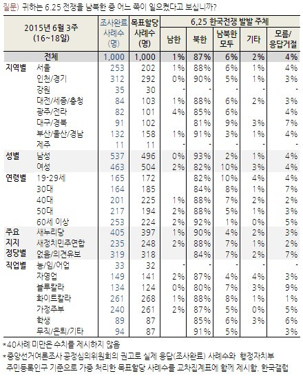 아무리 사상과 표현의 자유가 보장되는 민주주의 사회라지만 북한 출신인 나로서도 이해되지 않는 부분이다. 고작 20%가 다른 생각을 갖고 있다거나, 80%는 사실을 정확히 인지하고 있으니 뭐가 문제인가고 주장하는 것은 잘못이라고 생각한다. 북한에 의한 6.25 남침은 "사상과 표현의 자유"의 영역이 아니라 "진실"의 영역이다. 북한을 도와 6.25 전쟁에 직접 가담했던 중국과 북한 정권의 산파이자 6.25 전쟁 시 북한을 직접 도왔던 구소련의 대통령까지 인정한 6.25 남침 사실을 부정하고 심지어는 한국이 6.25 전쟁을 일으켰다고 주장하는 성인이 3.1%나 된다는 것은 문제가 있다고 생각한다. 북한처럼 불순한 의도를 갖고 의식적으로 그런 주장을 하거나 세뇌교육을 받은 것이 아니라면 도저히 설명될 수 없는 부분인 것이다.