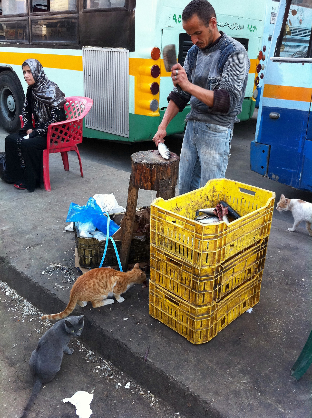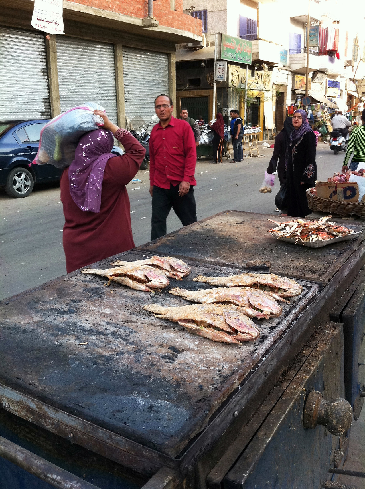 군고구마 장수가 연기가 풀풀 오르는 카트를 끌고 자동차인양 도로 위를 배회했으며 생선 장수는 간절한 고양이들의 시선을 무시하며 버스 정류장 바로 앞에서 생선을 손질했다. 그 옆에 당연히 여기가 내 자리라는 듯 모여있는 염소들의 모습은 황당하기까지 하다. 차 파는 할아버지는 카메라를 들어보이자 갑자기 멋진 포즈를 취하더니 사진을 보고 해맑게 웃었다. 방직시장의 좁은 골목 안은 현지인들끼리 싸우는 듯 놀이하는 듯 흥정하는 소리가 시끄러웠다. 내가 보지 못했을 뿐, 그것들은 아주 옛날부터 카이로에 존재했을 풍경들이었다. 여행자의 장막에 가려졌던 것들이 조금 덜 조용하지만 제법 힘있게 빈 틈을 메꾸고 있었다.