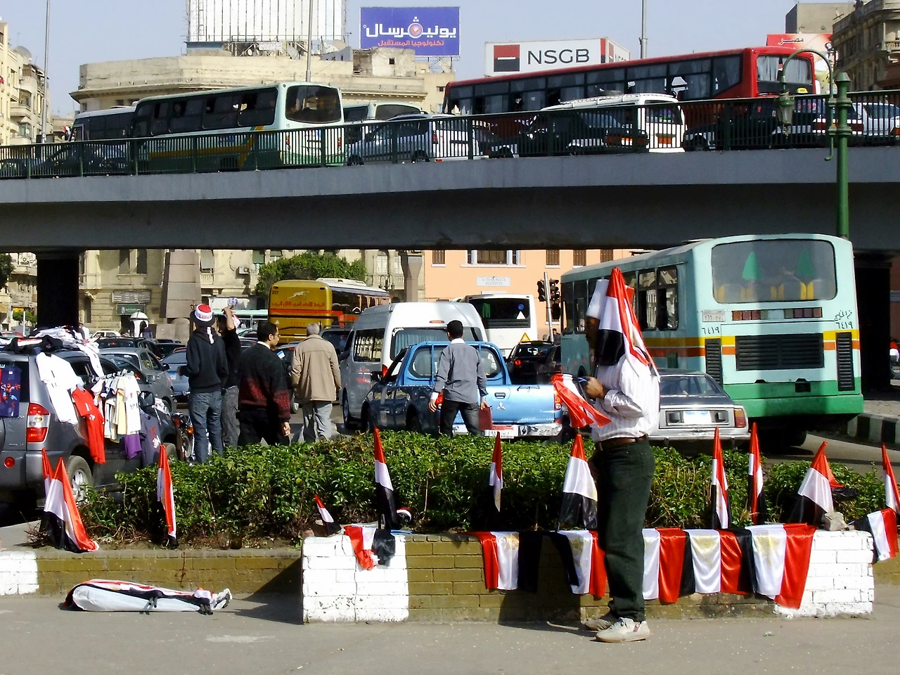 한 사람이 길가에서 이집트 국기를 팔고 있었다. 예전에는 한 번도 본 적 없는 풍경이었다.
